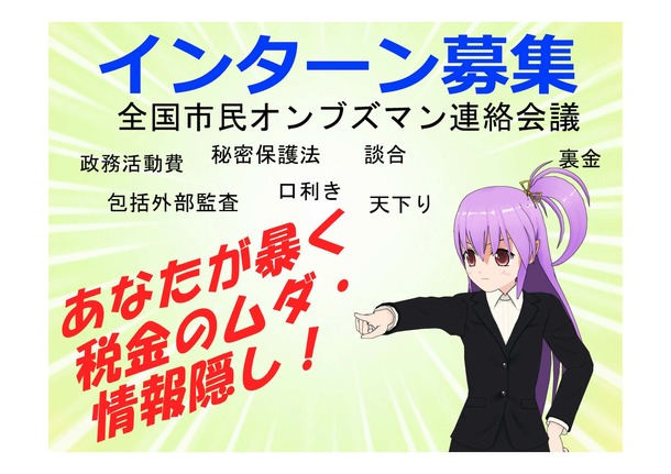 お問い合わせ先:全国市民オンブズマン連絡会議(担当:内田)