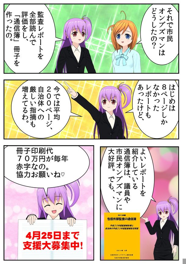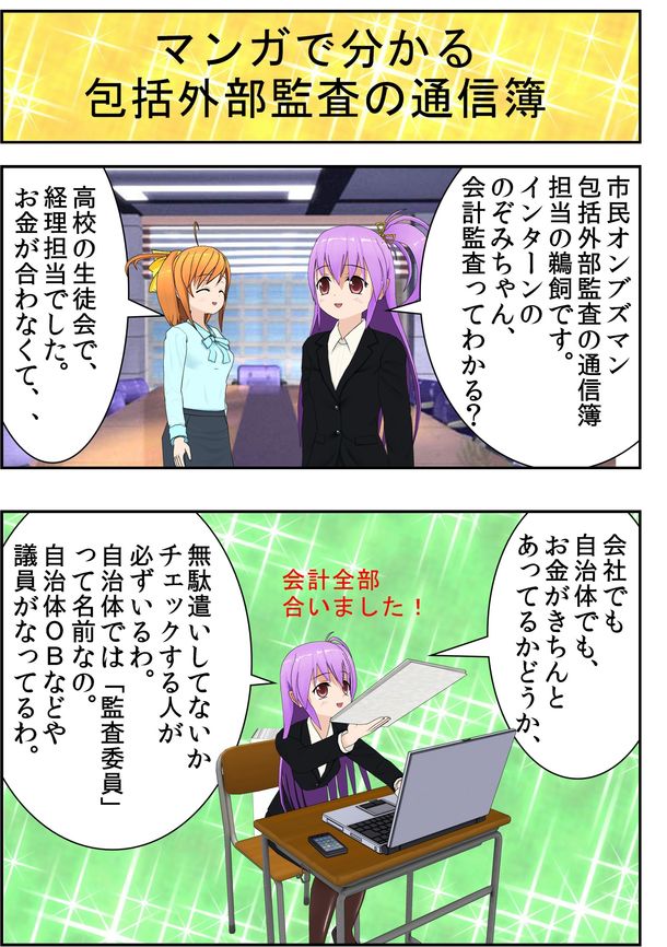 簡単ではありますが、「マンガでわかる 包括外部監査の通信簿」を作ってみました。