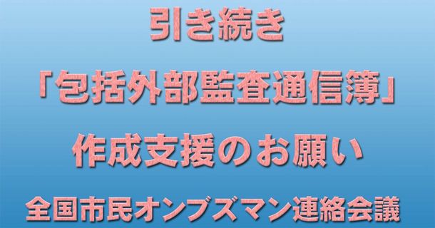 全国市民オンブズマン連絡会議では現在、包括外部監査通信簿への支援を19/4/25まで募集中です。