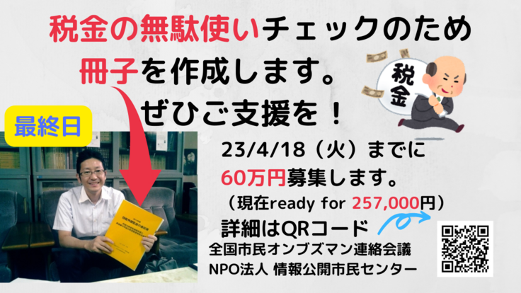 【最終日】市民オンブズマン活動支援募集は4/18(火)23時まで