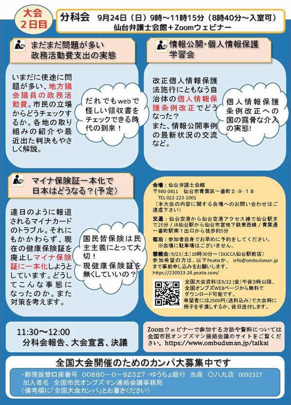 23/9/23(土)24(日)第30回全国市民オンブズマン仙台大会2023