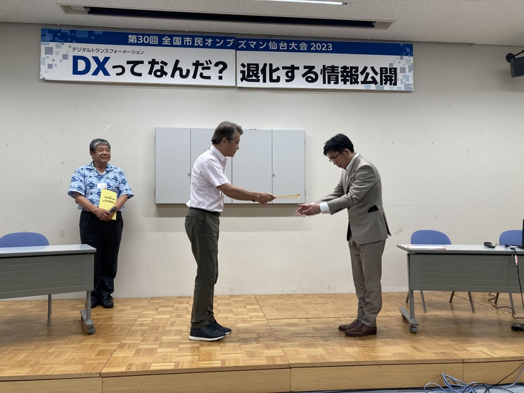 第30回全国市民オンブズ大会でオンブズマン大賞表彰式とスピーチ