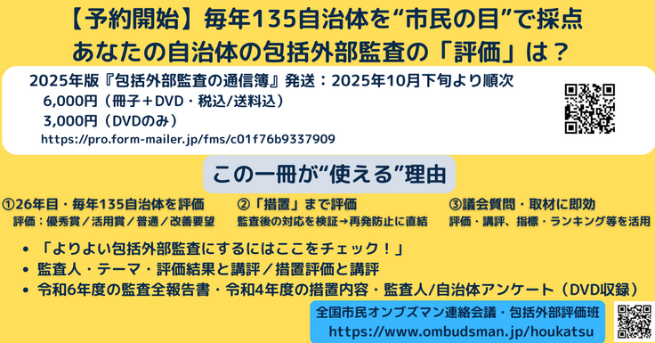 1. 【予約】2025年版『包括外部監査の通信簿』
