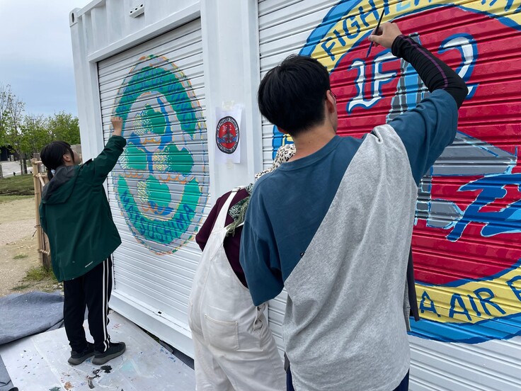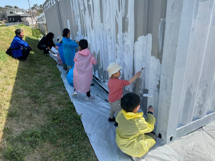 4/13(土)に地域の子供たちご協力のもとコンテナに下地塗りを行いました。