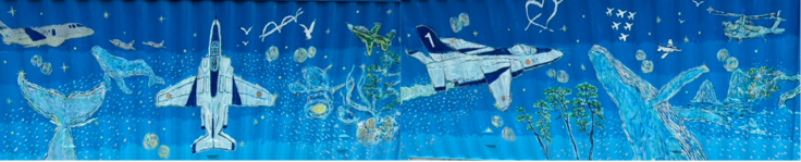 シャッター部分には松島基地所属機のエンブレムと格納庫をイメージした機体を描いていただきました。