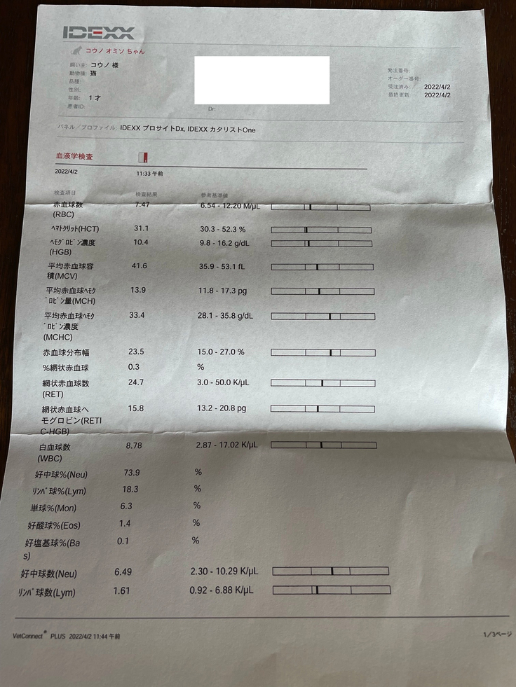 FIV(猫免疫不全ウィルス)とFeLV(猫白血病ウィルス)は陰性となっています。