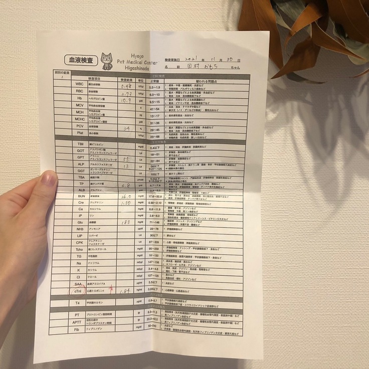 到着後、院長先生に診てもらい、色々な検査をするので19時に迎えにきてくださいとのことで、私は一旦帰宅、同居人は午後から仕事に向かいます。診察で体重は3.3kgくらいあったはずが、2.8kgまで減っていました。