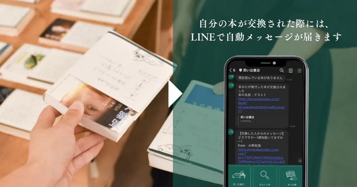 書店にあるあなたの本がだれかに交換されると、公式LINEを通じて交換相手からのメッセージが届きます。