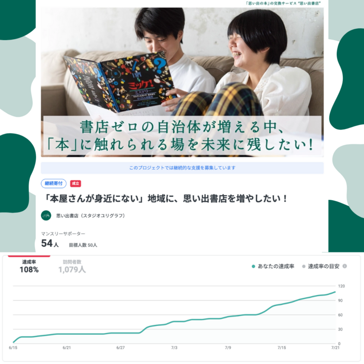 皆様の温かいご支援と応援メッセージに支えられ、思い出書店の継続寄付サポーター募集では、