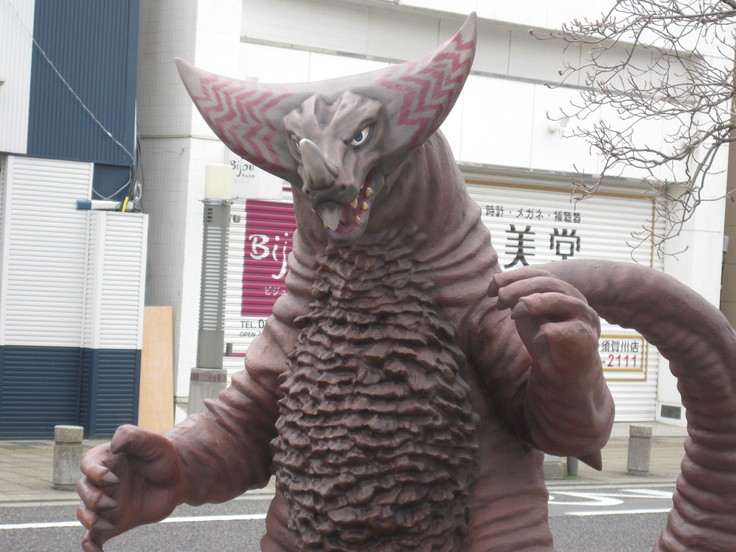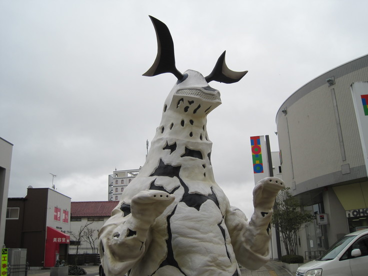 さすがに通りには、怪獣やウルトラヒーローのヒューマンサイズが所々に飾られています。 もし怪獣達やウルトラヒーローに合いたいなら須賀川市に来てください。 きっと会えますよ(笑) そうそう福島空港にもウルトラマンに関係した面白いモノがたくさんあります。