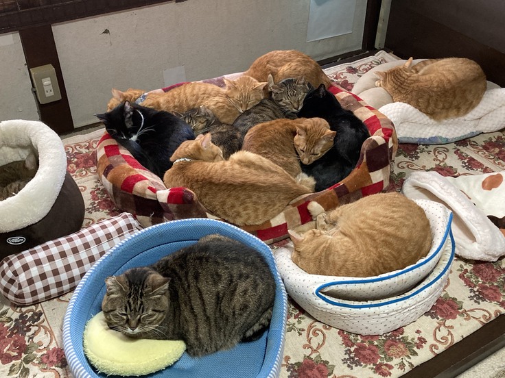今現在、私がお世話している頭数は55匹ですが、そのうちシェルターで保護猫としてお世話しているのは37匹で、残りの18匹は地域猫としてお外で市の登録を受けて管理している猫になります。