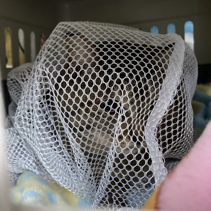 臆病で普段から触れない子なので、色々な捕獲方法で試してもらいましたが難しく、最終的には捕獲用の網で捕まえてようやく病院へ連れて行けました。