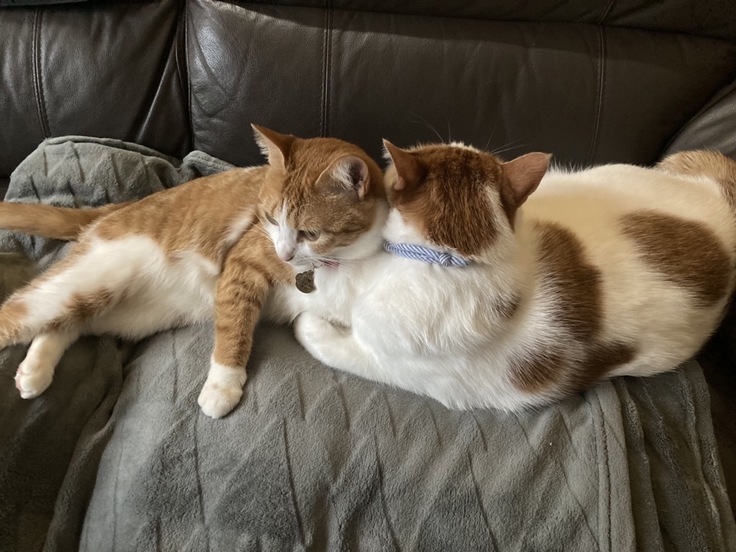 ↑ 我が家からお迎えいただいた「こもも」(左)と先住猫の「こはく」くん