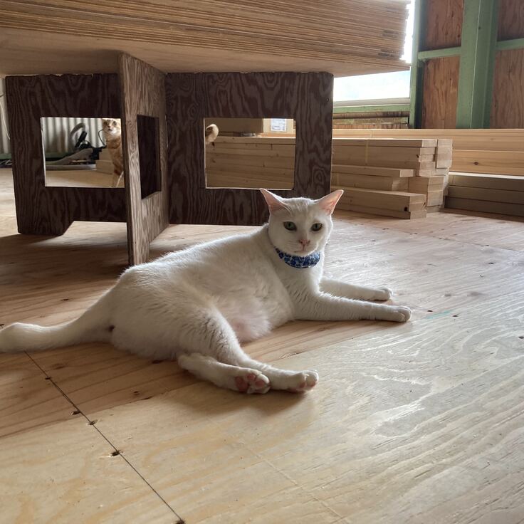 まだエアコンが付いておらず暑いので昼間はずっと過ごしている子はありませんでしたが、みんな一通りチェックして思い思いの場所で過ごしていました。