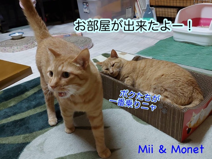 まずは、モネちゃんとみぃちゃんの実家組に入居してもらい
