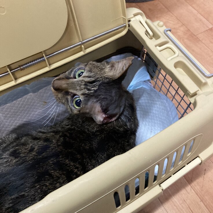 想像より簡単に捕まえさせてくれ(といっても網は登場しましたが(-_-;) )、無事に病院へ連れていくことができました。