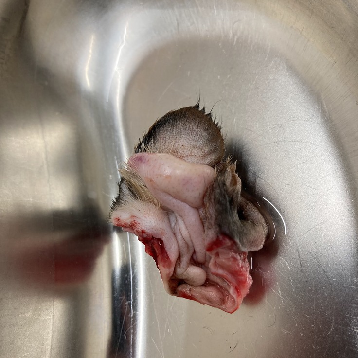思っていた以上に耳血腫が広範囲に広がっており予定よりも大きく切除しなければいけなかったようです。