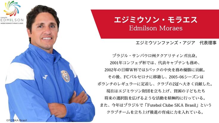 (※ページ上のエジミウソン氏の画像、名称、ロゴなどについてはエジミウソンファンズ・アジアおよびFC SKA Brasilより掲載許諾取得済み)