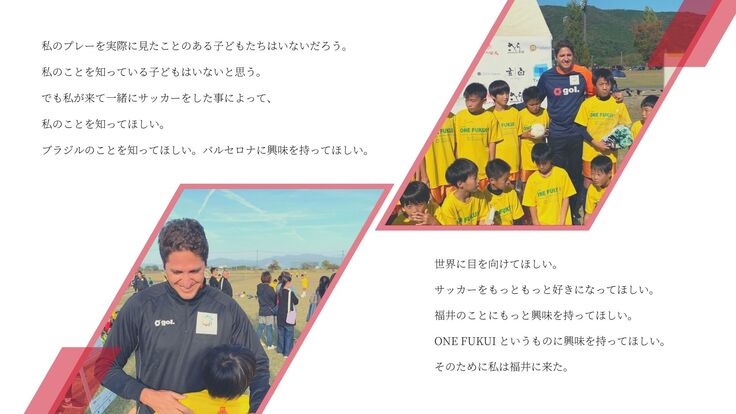 ブラジルやバルセロナ、リヨンの子どもたちを福井に招聘して国際サッカー親善試合を行う計画を作り、2019年から準備してきました。
