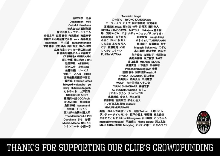 これからも皆さまに紡いでいただいた「いのち」を全力で活かし、スポーツやサッカーを通じて活力ある備後・福山の未来創生に寄与してまいります。