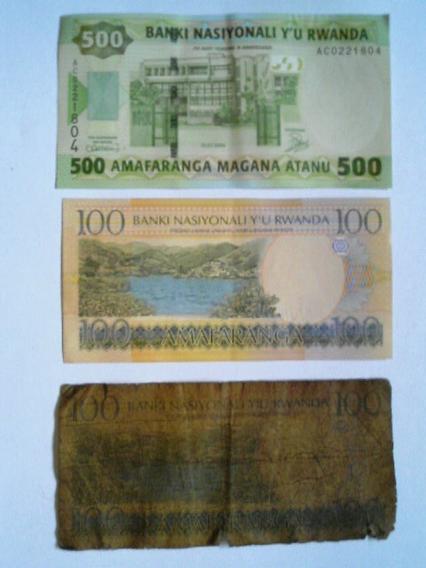 しばらく前はこの100フランも紙幣だった(写真がボケていてゴメン)。そして500フラン札も、今のデザインと違う。なんだかんだ私がルワンダに来てから、お札のデザインも変わり、出回り方も変わってきた。