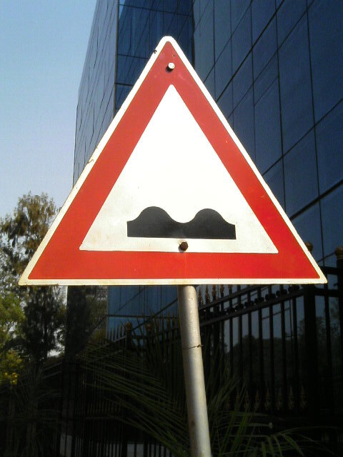 でもこれに気づかず、そのままのスピードで突入した日にゃあ、あなた、車が空を飛び、どっかーんという感じで着地するから、下手すると乗車している人はむち打ちになりそうなのである。だからやはり車を運転する時は標識に注意して、車を走らさなければいけない。