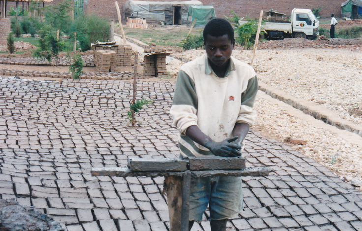 虐殺が終わり、仕事もなく佇む働き盛りの男ども、親が殺されたり、刑務所に入っていたりする子供たち。そんな人材があちこちにおり、彼らにワンラブランドを作るためのレンガを作ってもらった。