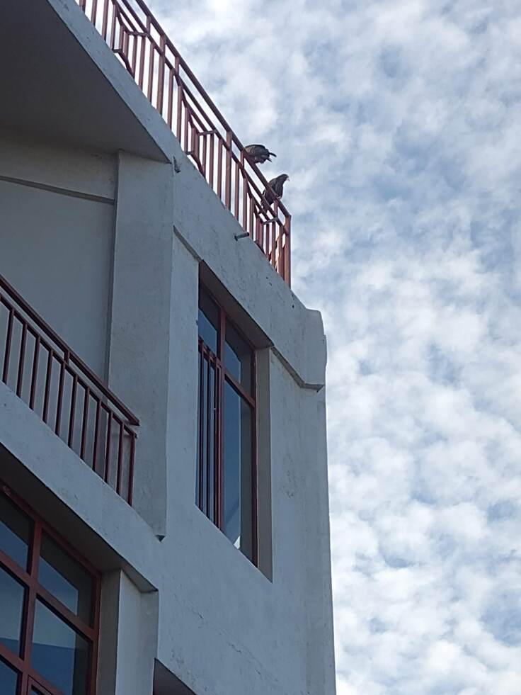 そしてワンラブの建物の屋上にはトンビなのか鷹なのか、羽を休めてる。