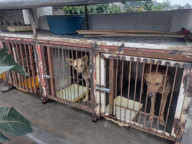 そして引っ越しを余儀なくされていた犬たちも、新しい小屋に移りました。今までの小屋より頑丈です。昼間はここでお休みして、夜は庭に放ち、怪しい物音、出来事を人間セキュリティよりしっかり見回ってくれます。