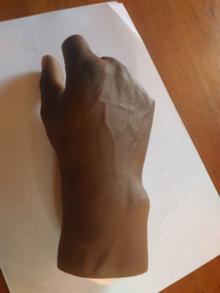 そうして出来上がった義手は、見た目は本物そっくり。爪の半月もきちんとあるし、男性の場合は浮き上がる血管なども再現されている。ちなみに女性の手は、もっとやわらかい見た目となる。