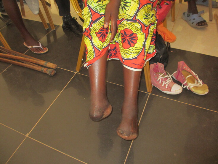 この女性は虐殺の時、足を鉈で切り落とされた。ルワンダにはそういう人が山のようにいて、とにかくあの時代は鉈や斧で切り刻まれた人があちこちにいた。