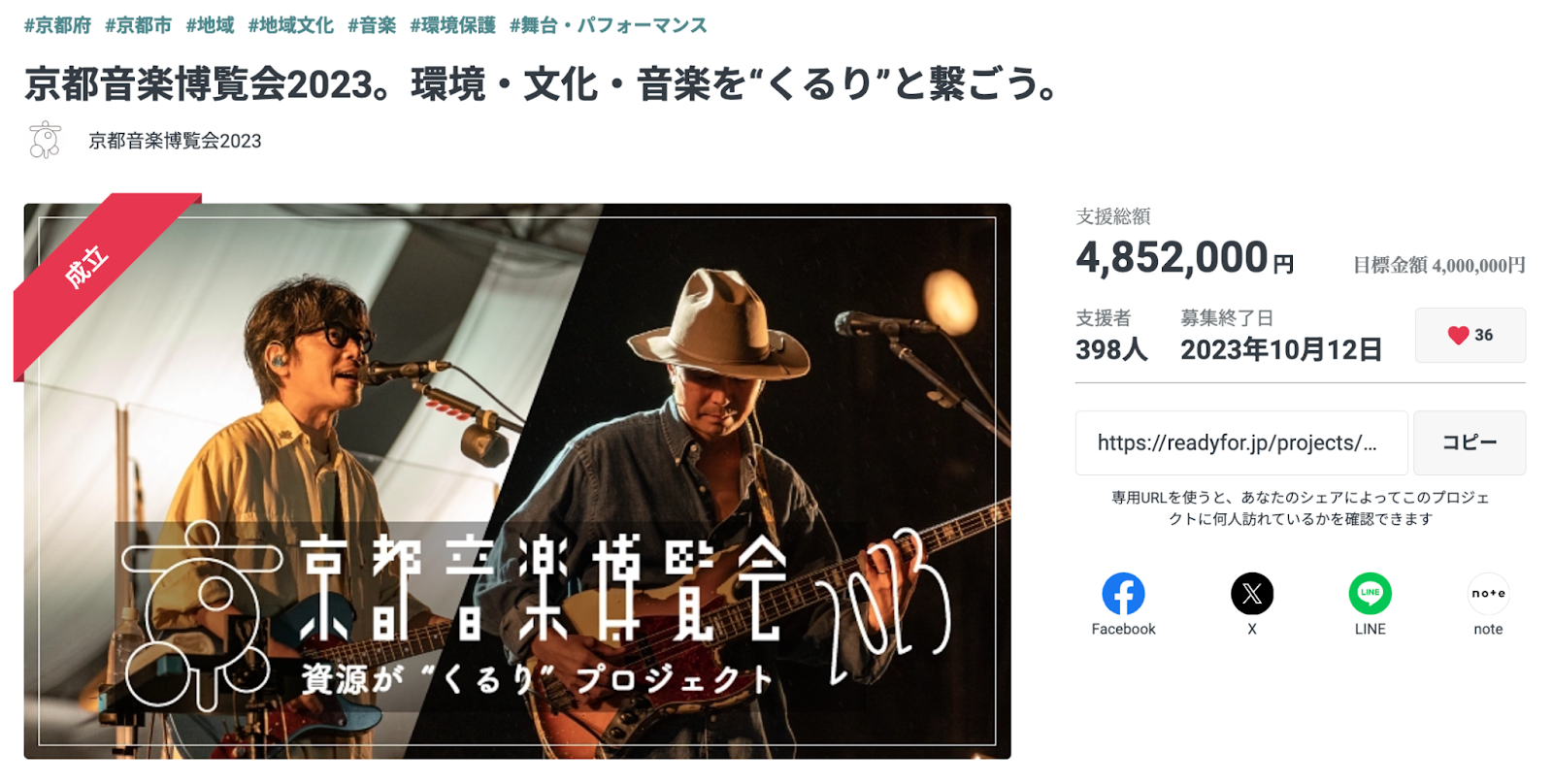 昨年は『京都音楽博覧会2023。環境・文化・音楽を“くるり”と繋ごう。』プロジェクトにご支援・応援をいただきまして誠にありがとうございました。