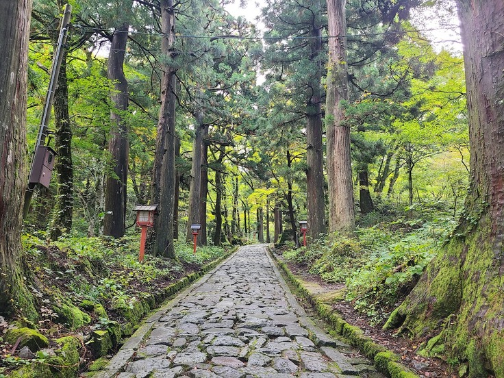 1. 自然石を敷きつめた参道の長さが約700メートル