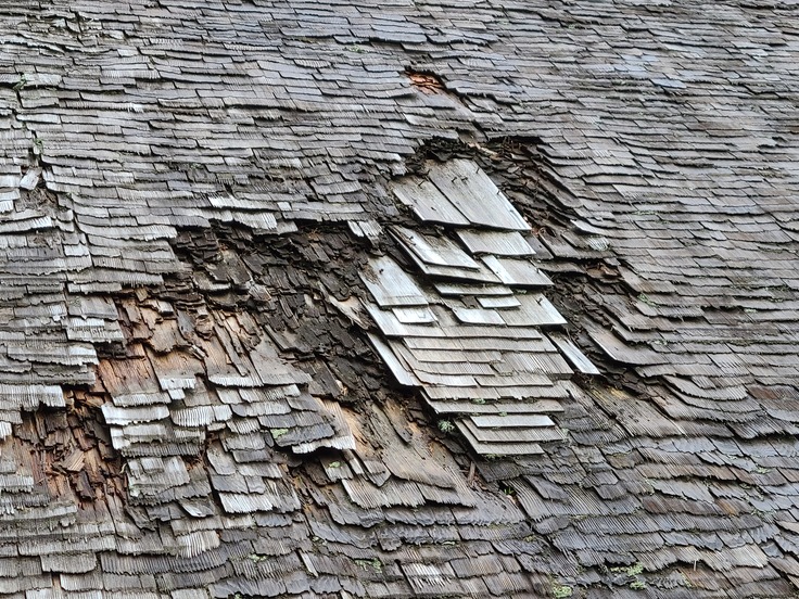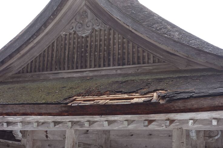 |大神山神社奥宮の屋根の破損