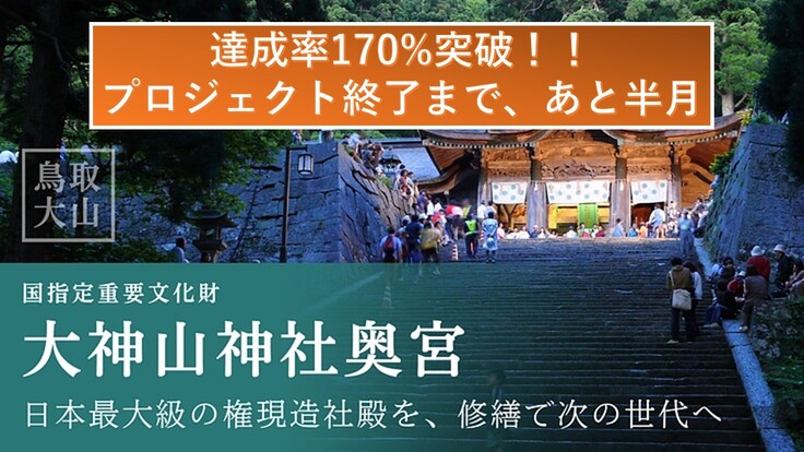 早いもので、大神山神社奥宮造営クラウドファンディング募集も、残り半月となりました