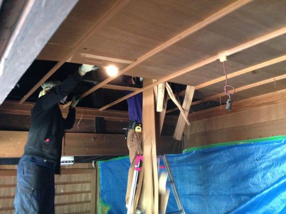 天井をはがします。大胆に。実は解体って、結構なストレス発散!