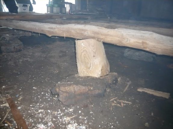 基礎は石を置いただけ、その上の束材も、こんな風に間に挟んだだけのもの。