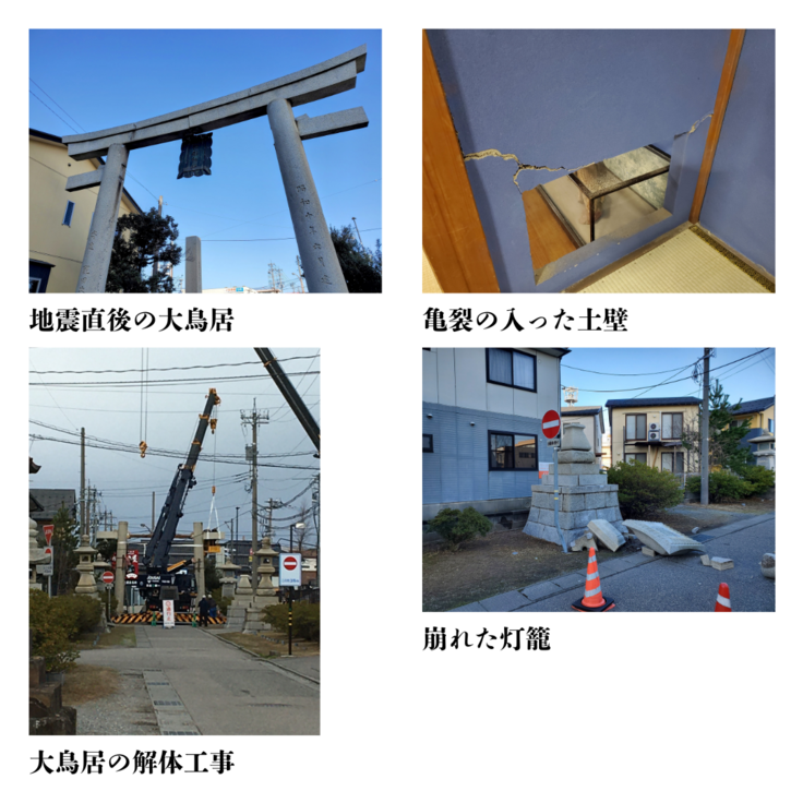 県都・金沢においても揺れは強く、発生時刻は神社の境内に参拝者が多くいらっしゃるときでした。