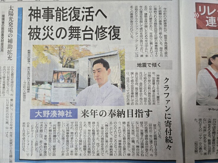 令和6年12月5日付 北國新聞朝刊にて、本プロジェクトを紹介する記事が掲載されました。