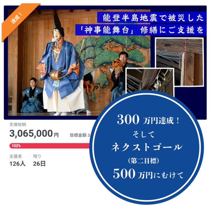 皆様のご協力により、12月14日(土)第一目標金額300万円を達成することができました。心より感謝申し上げます。