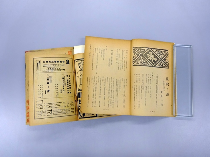 『花咲く港』は、雑誌『演劇』(1943年1月号)掲載の菊田一夫の同名戯曲が原作で、1943年3月帝国劇場の「東宝古川緑波一座第一回国民演劇公演」にて上演されました。