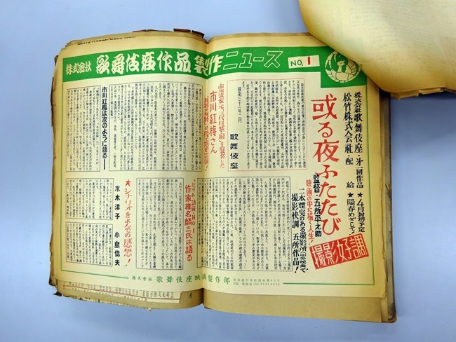 下の写真は、『或る夜ふたたび』のスクラップブックに収められている「株式会社歌舞伎座作品製作ニュース」No.1です。