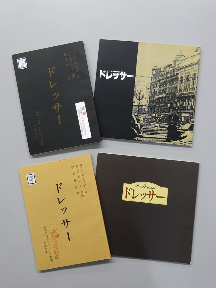 もう一件ご紹介する資料は、イギリス演劇の秀作『ドレッサー』(ロバート・ハーウッド作)の台本とプログラムです。1988年1月サンシャイン劇場上演の『ドレッサー』で、三國連太郎は主役の「リア王」を演じる座長役をつとめました。その演技は評判を呼び、翌1989年11/11-12/4に同劇場で再演された際も、再び同役を演じています。この時のプログラムには、1988年の『ドレッサー』への出演が三國連太郎にとって13年振りの舞台出演だったことが記されています。このことからも、舞台出演が久しぶりだったとうかがい知ることができます。