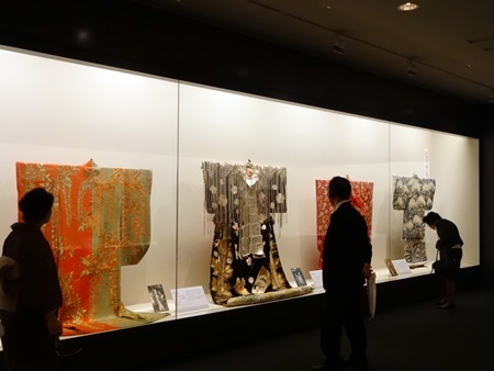 いつもは、重要文化財レベルの茶道具や書画などを中心にした、“通”好みの展覧会を開催することの多い三井記念美術館ですが、夏は<美術の遊びとこころ>と銘打って、若い年齢層にも親しみやすい展覧会を企画しています。今年は、三井記念美術館が所蔵する能面と能装束に加え、三越衣裳部(現三越伊勢丹)が保管してきた歌舞伎衣裳を特別展示するということで、明治大正期の歌舞伎の舞台で名優に実際に着用された衣裳が13点展示されることになりました。能の装束と歌舞伎の衣裳を同時に鑑賞できる、斬新な催しとなっています。