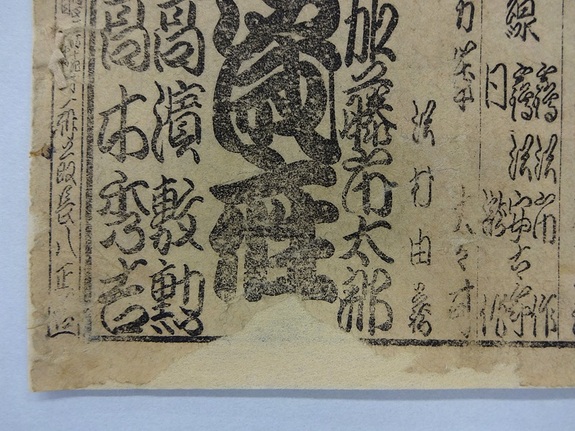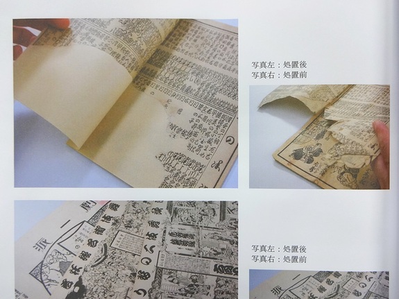 当館では資料修復に割く資金が無いため、よほどのことがない限り資料の修復はできないのですが、損傷の激しい資料の修復を紙資料修復工房さんにお願いすると、紙面も鮮やかとなり、角もピンと紙の勢いを取戻し、とても美しくなって戻ってくるので、またいつか他の破損資料も修復したい、と夢は広がるばかりです。