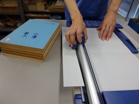 (板目紙に台本を合わせて、大きさの目安をつけます)