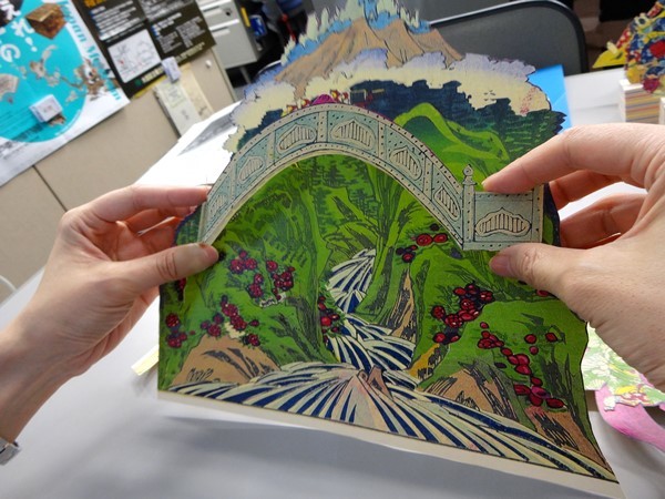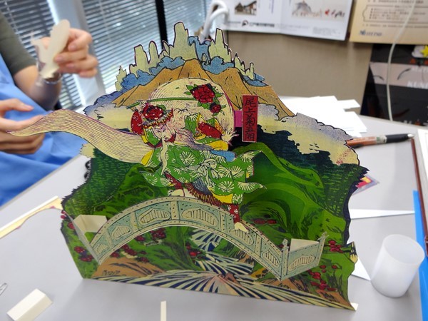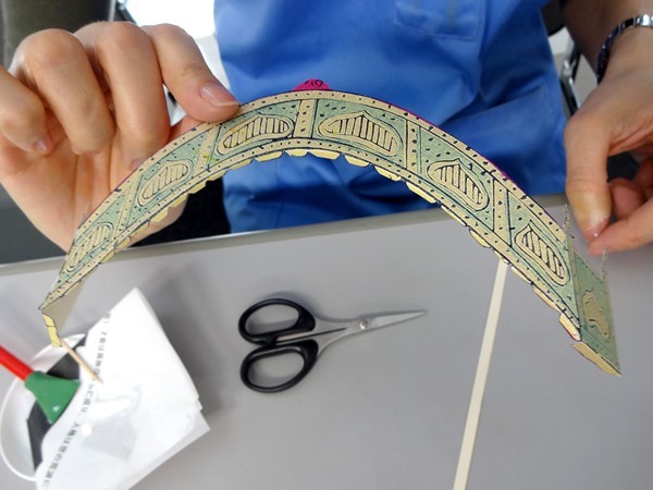 なんだか早口言葉のようですね。復刻予定の組上燈籠絵の試作品を実際に組上げて、手順を探ってみようというこの企画、10月12日の新着情報では、貼り付け作業についてお伝えしましたが、今回はいよいよ「組上燈籠」を完成させます!お気づきかもしれまんが、今回のタイトルには「組上燈籠(絵)」の(絵)が付いていません。「組上燈籠絵」を組み立てて「組上燈籠」へと完成させるからです!