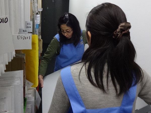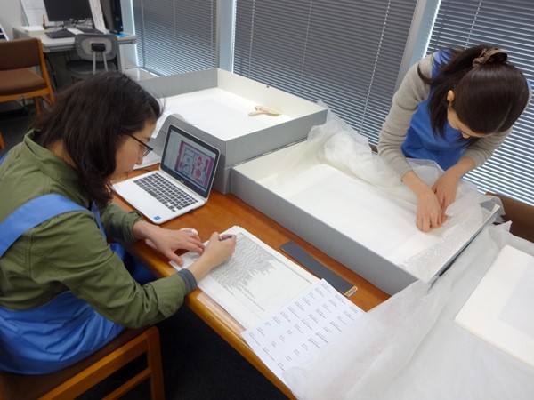 納品されたデジタル画像と原資料をつき合わせて、確認しています