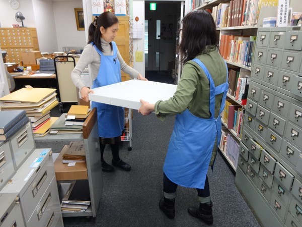 3月も中日となりましたが、今日の東京は外回りから戻る度に眼鏡が曇る寒さです。当館は本日3月15日まで春期館内整理休館中で、広い閲覧室を利用して普段出来ない大量資料の整理作業や、閲覧室ミニ展示の準備を行っております。