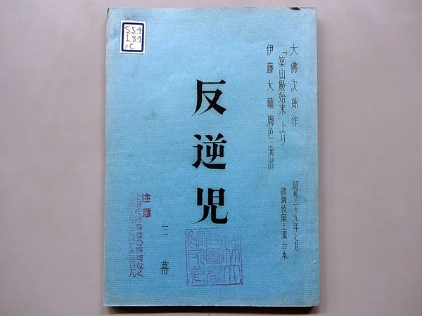こちらは、1964年7月歌舞伎座上演の『反逆児』の台本です。